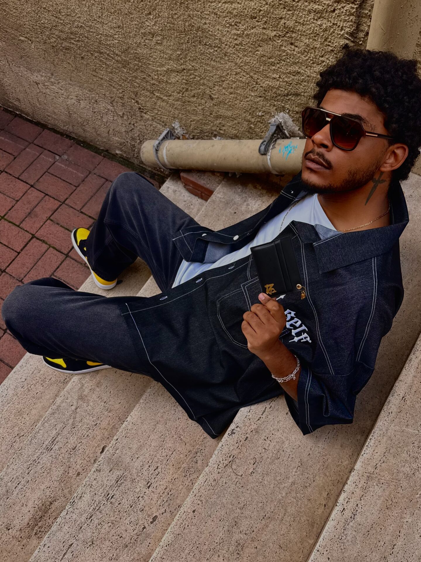 Mat-siyah premium deri yüzey, ince dokulu zarif yapı. Minimal ama güçlü görünüm.